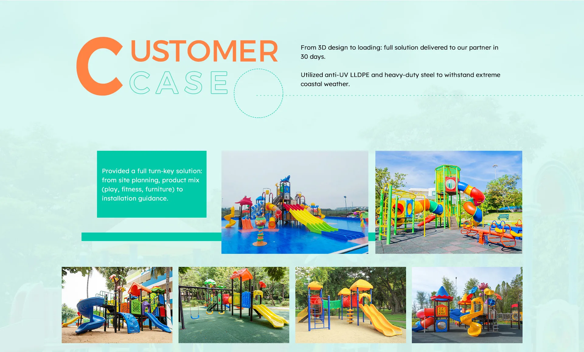 मुख्य उत्पादों: इनडोर खेल का मैदान, आउटडोर खेल का मैदान, प्रीस्कूल शिक्षा, बच्चों के खेल का मैदान